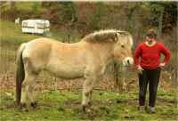 Er is nu een andere bewoner op de boerderij, het Fjorden-paard