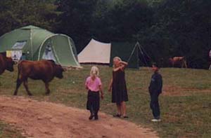de 'koeienroute' soms langs onze tent voerde. Dan zagen wij ineens die