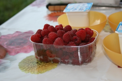 Of we haalden frambozen bij de boerderij, die dan ter plekke voor ons geplukt werden.